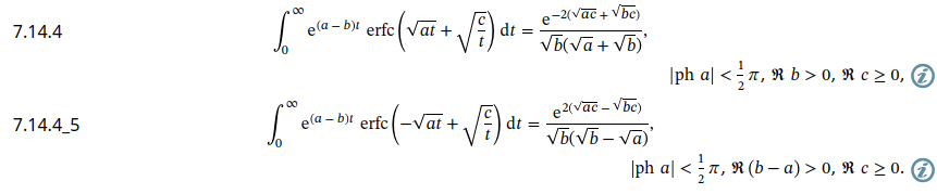 - New Laplace Transforms: https://dlmf.nist.gov/7.14#E4_5